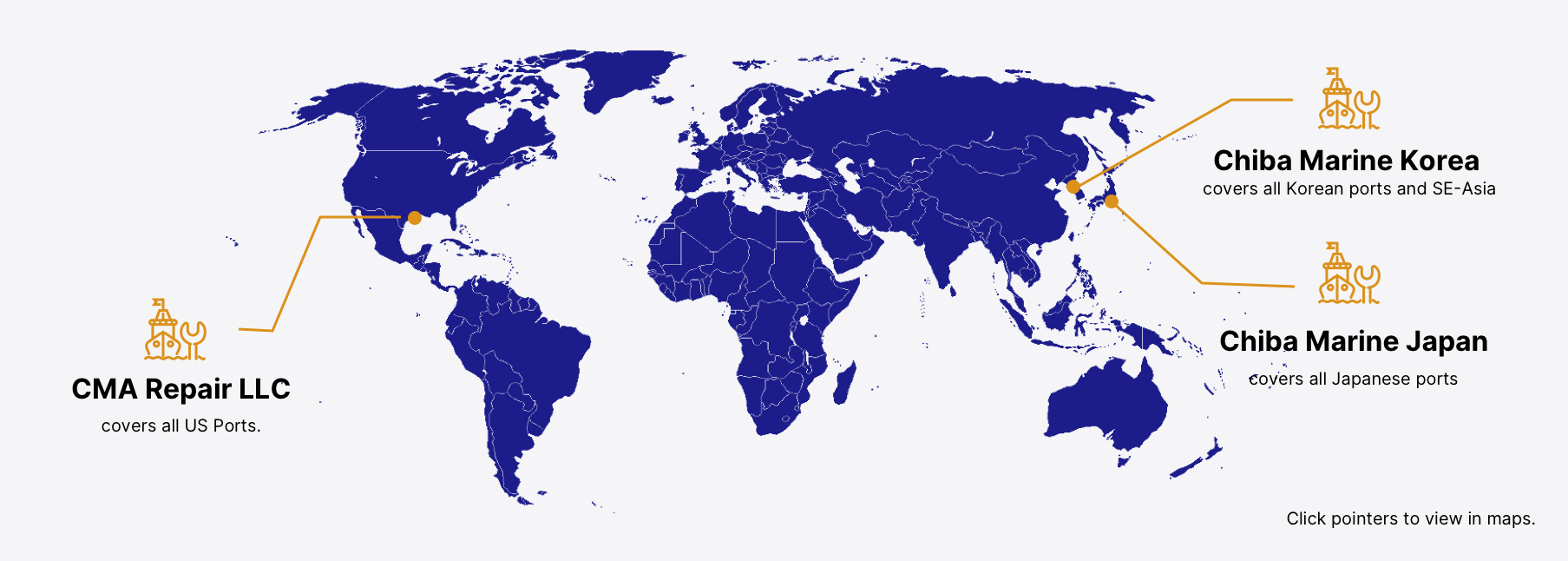 CMA Repair LLC is a renowned marine repair company led by some of the most experienced marine professionals and engineers passionate about solving problems related to all marine assets, including ships. We are marine repair solution provider company based in Japan, Korea and US. We travel globally for port and voyage repairs. We are registered with MAN B&W and Yanmar, as their trusted service provider.